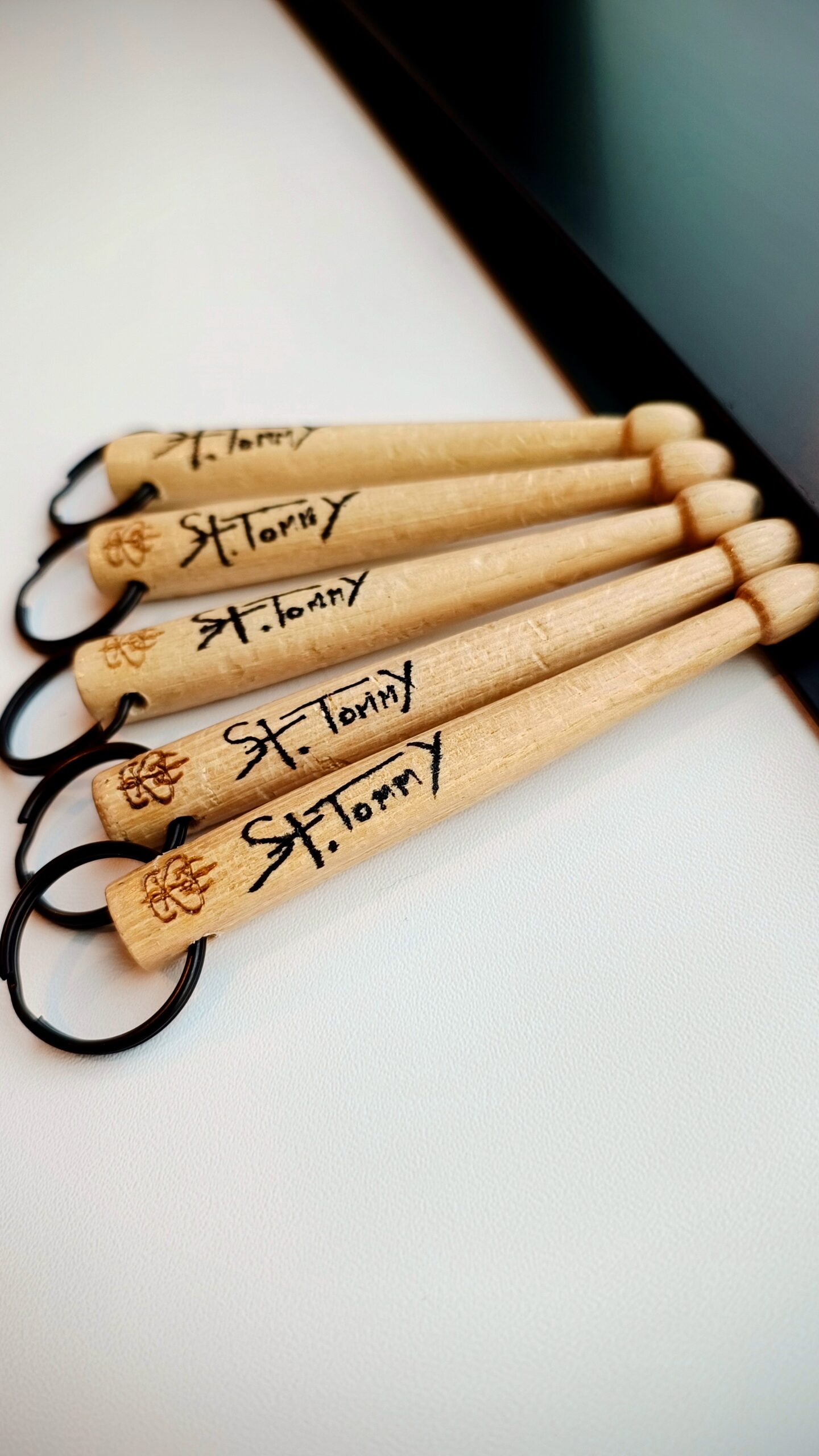 100% Hand-made keychain made from stage-played St Tommy’s drumsticks.